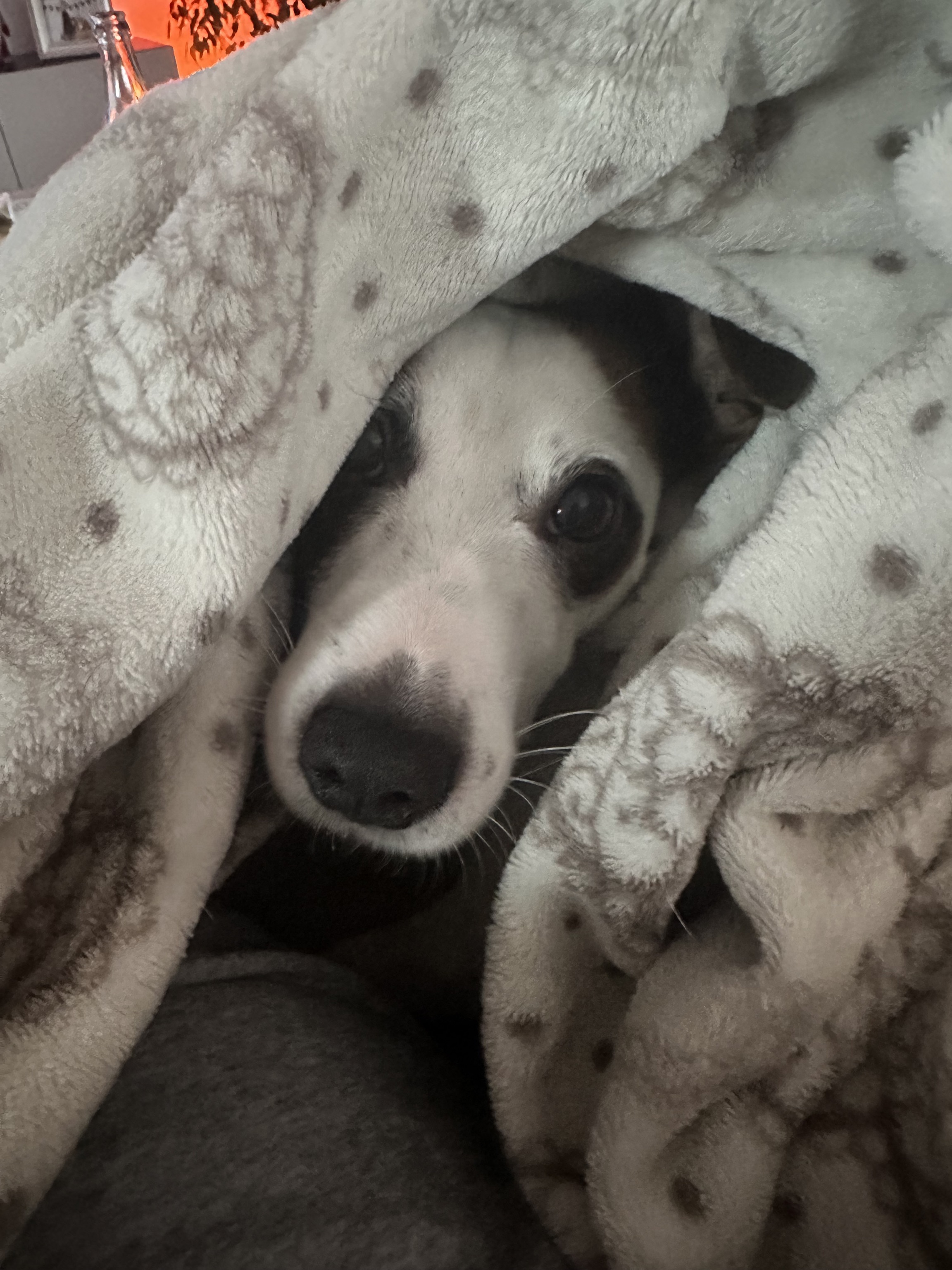 Bin ich dann wieder zuhause, kuschel ich mich total toll ich meine Decke ein, das ich grad nur noch beobachten kann, was hier und da so passiert. Denn mal ehrlich, ich bin ein Jackrussel und egal wie müde ich bin, will ich wissen was so um mich rum passiert :D.