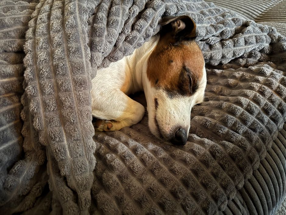 Wenn er schläft, dann schläft er – tief und fest – nun ja, manchmal. Oft denkt man er ist in tiefen Träumen um dann sekundenschnell aufzuspringen, weil er irgendwas gehört hat.. sei es draussen, oder auch im Fernseher.